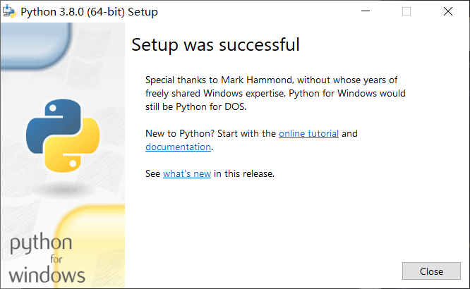 Python 3.8.0 64位 安装包: 官网下载 百度云下载
